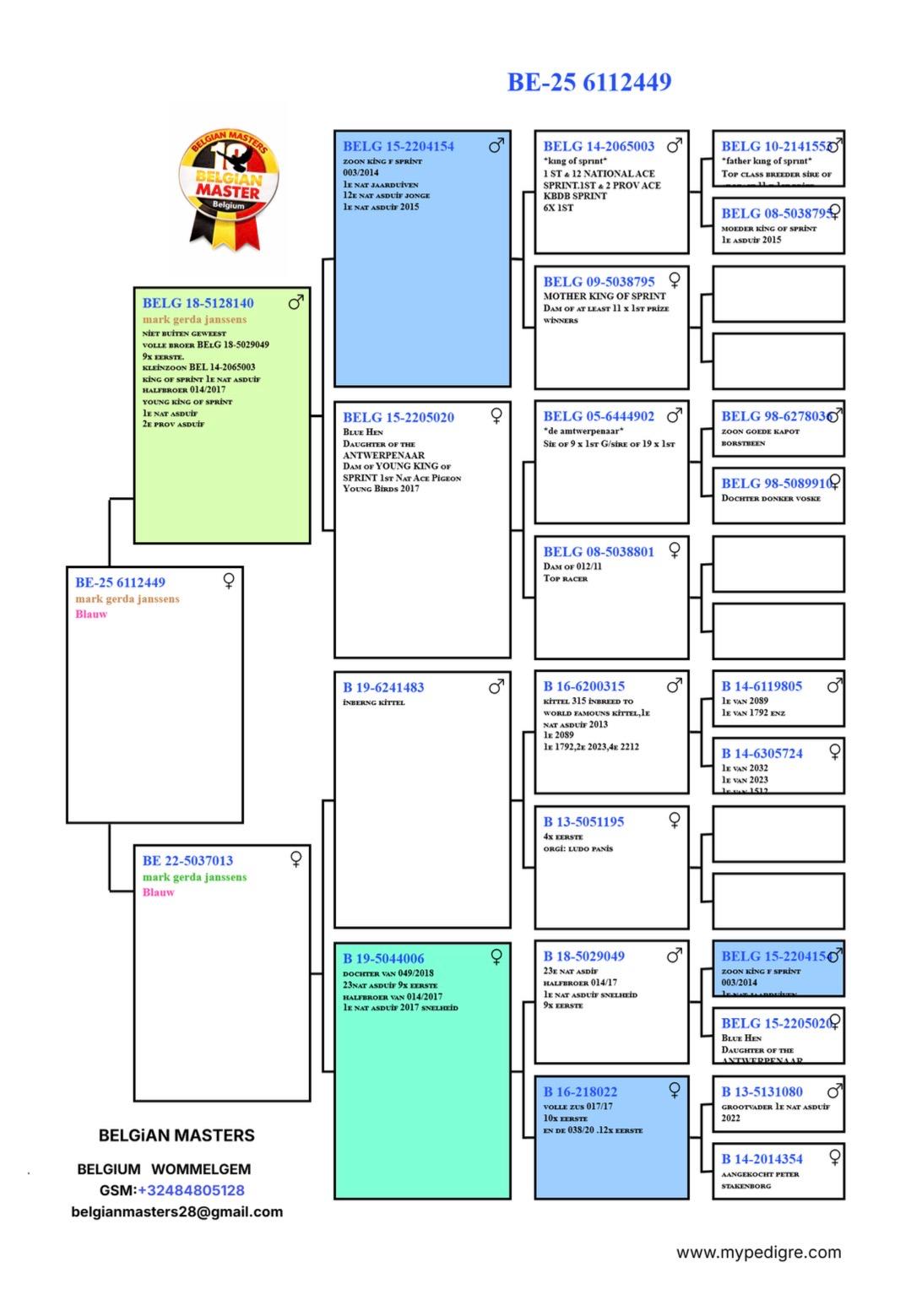 That makes BE25-6112449 – King’s Ace 449 a serious breeding hen built on race results from both sides of the pedigree.